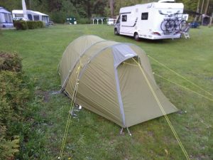Schnell das Zelt aufgebaut und geduscht. 4 Minuten hat man Zeit, für einen Euro gibt’s warmes Wasser.